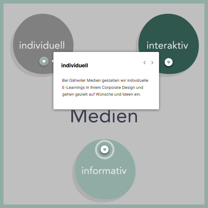 Gemeinsam entwickeln wir ein Lernkonzept, das zu Ihren Zielen passt. Anschliessend setze ich das E-Learning professionell um. In einer Review-Phase können Sie Feedback geben und Änderungswünsche einbringen.